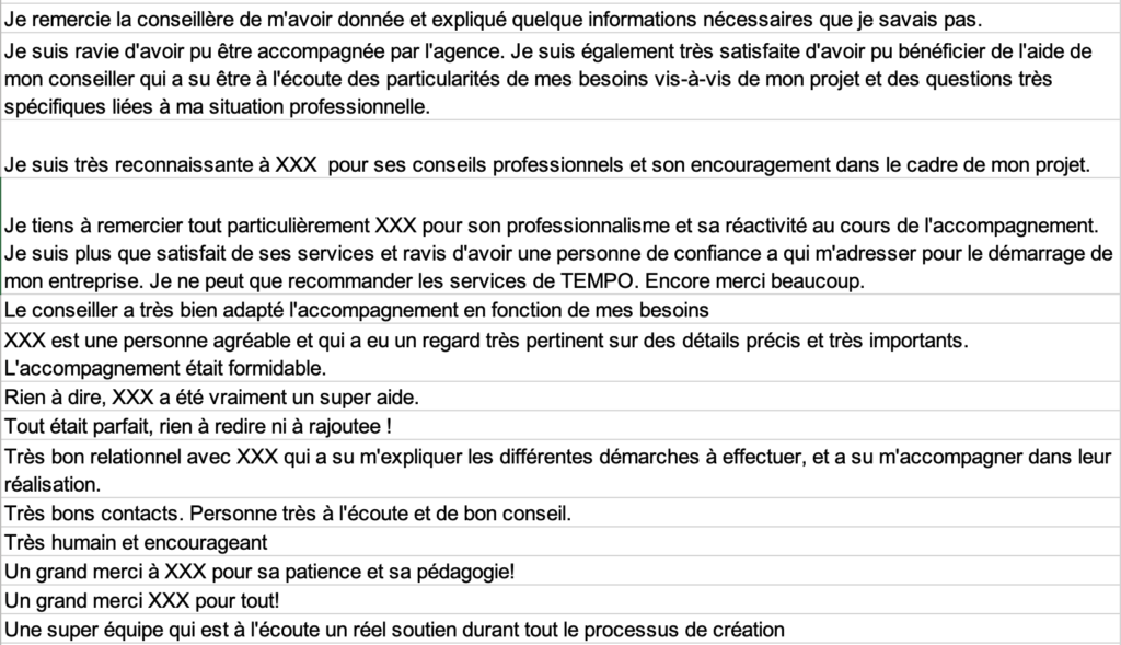 Ces rares abandons sont des situations où le bénéficiaire interrompt la relation en cours d’accompagnement, mais ne sont pas en lien avec la réalisation ou non du projet entrepreneurial.
